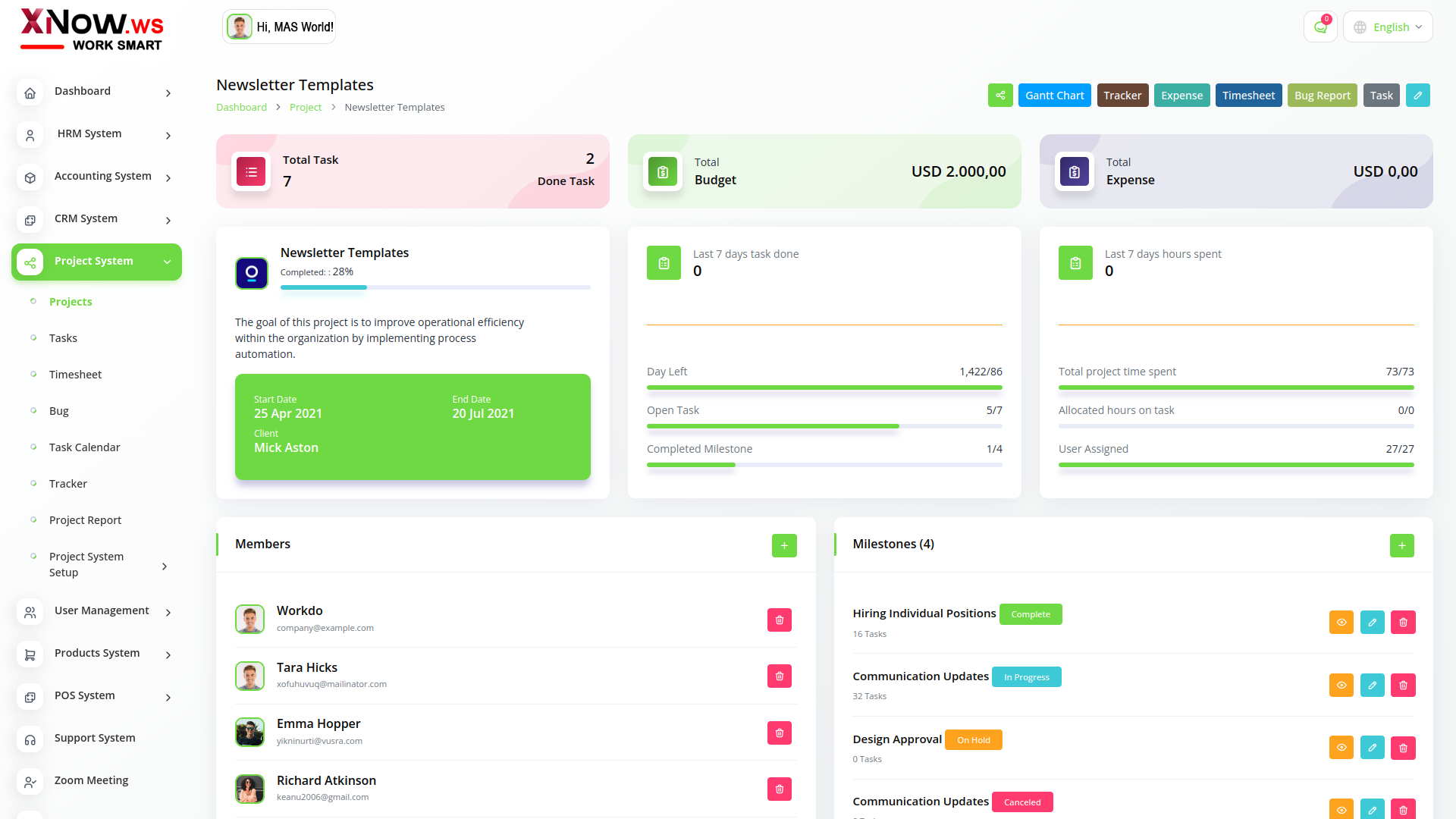 XNow Work Smart, All In One Business ERP With Project, Account, HRM, CRM & POS